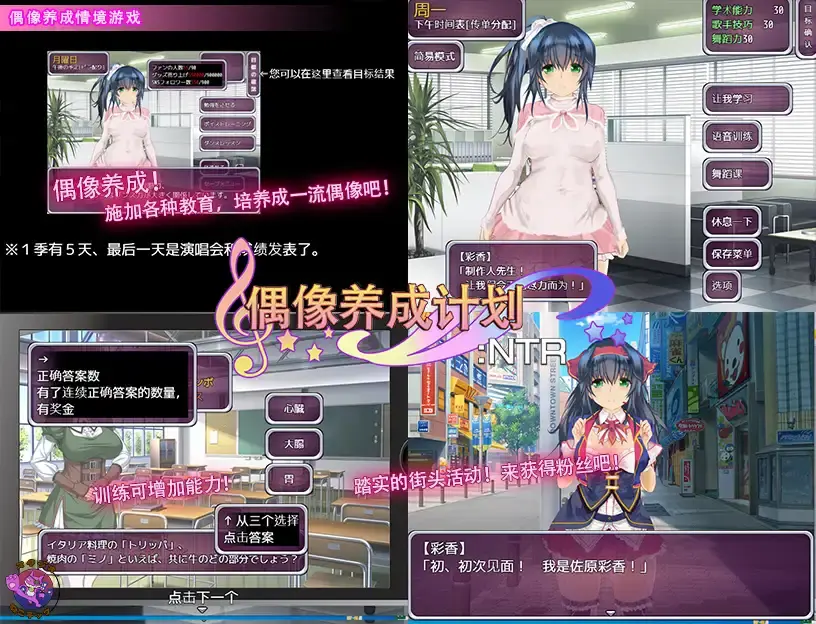 成为艺人的梦想在半路中放弃的主角。因人品好而被弱小的经纪公司所雇用,现在正准备打造新的少女偶像。但是新人偶像的路不容易,当然也不顺利。而大企业的广告经纪公司的魔手正逼近苦恼中的主角。没有后路的少女偶像即便是一根稻草也会拼命抓住。要是成绩差的话,会为了当少女偶像而不择手段。当然这会对你保密。贯彻纯纯之爱、还是被其他人睡, 全部都看你。