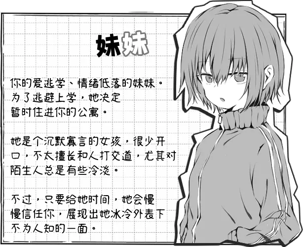 不过,别忘了完成你的插画委托,赚取报酬来购买物品,提升你和妹妹的生活质量。