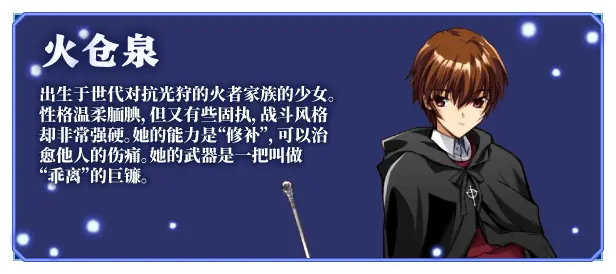 一名叫做火仓泉的赤瞳少女救了他,而这名神秘的少女和他同是樱水台学园的学生。