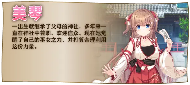 你必须和觉醒了巫女之力的美琴携手前行,拯救你们的家园!