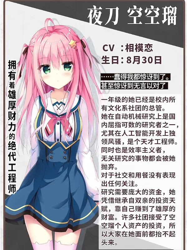 《天选庶民的真命之选》是一部恋爱题材的视觉小说,玩家在其中扮演布波能凪。