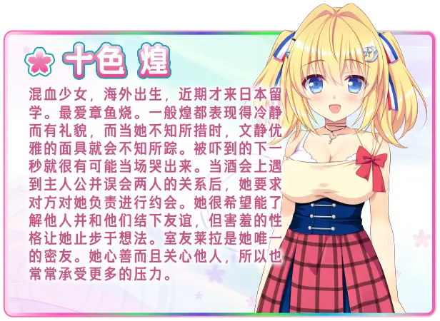 以及细腻的插画会带领玩家观赏古贺凪青和他的两个女朋友十色煌以及信田结爱从蛮细剧情的故事。