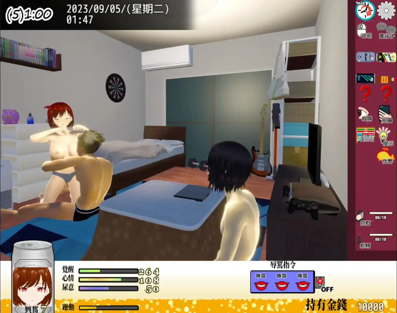 一边通过点击屏幕或命令来让你的女朋友感到性欲的游戏。
