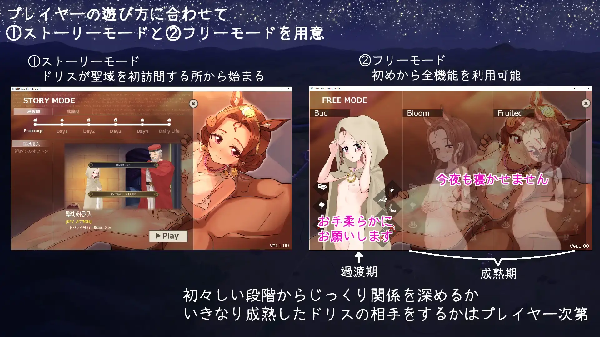 现可反复游玩「日常」章,根据最近H内容女性们会有三种反应变化+差分台词。