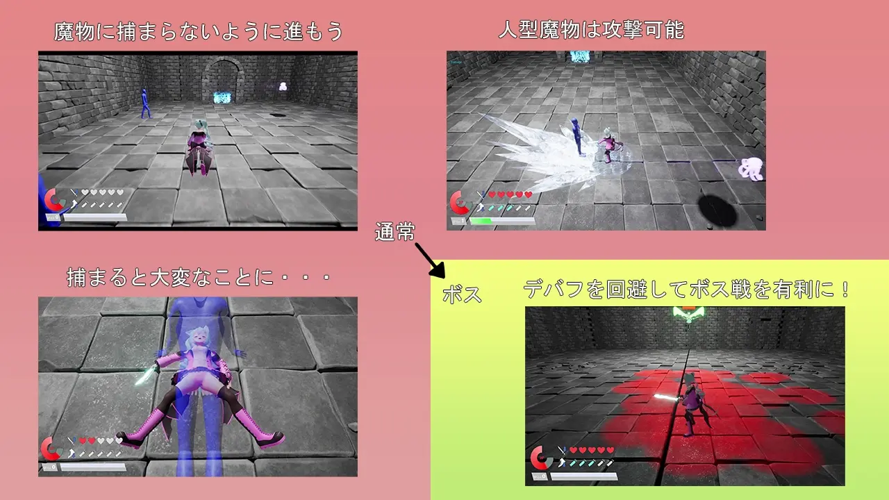 • 向深处前进,避开章鱼型淫兽与人形淫兽的捕获。