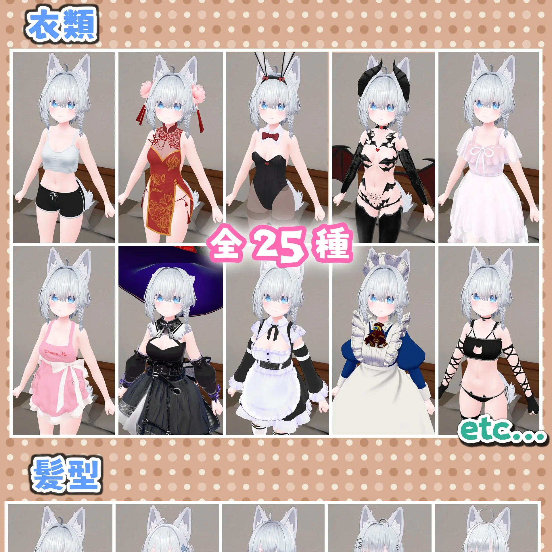 ・服装(共25种):经典女仆装、旗袍、清纯连衣裙,到性感兔女郎、情色围裙等。