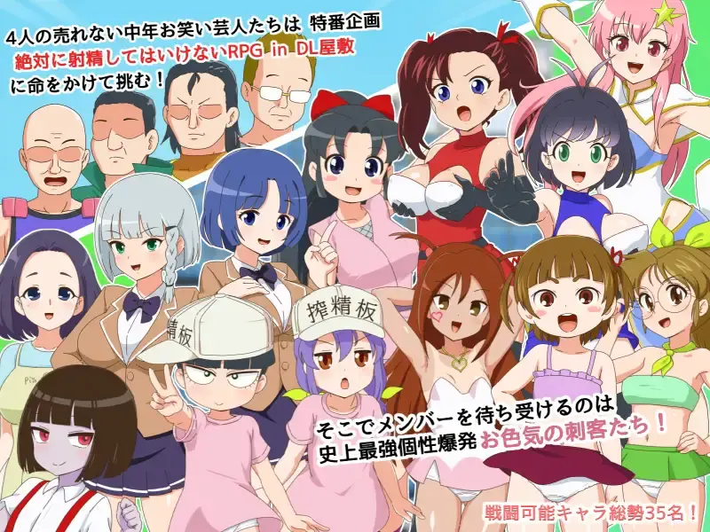 挑战企划的是4位卖不出去的中年搞笑艺人! 等待他们的是史上最强、个性爆发的性感刺客们! 以及充满各种机关阻碍前行的色情地牢“DL公馆”! 踏入此地者,无论发生任何事都绝对不能射精!肉欲的舞台上,悲鸣与娇喘交织的大场面冒险谭。 在汹涌而来的情欲面前,你能够“射”存下来吗!? 从大姐姐到清纯少女,连机器人和鬼怪也乐意奉陪! 赌上性命的性爱战斗!不想死的话唯有忍耐!