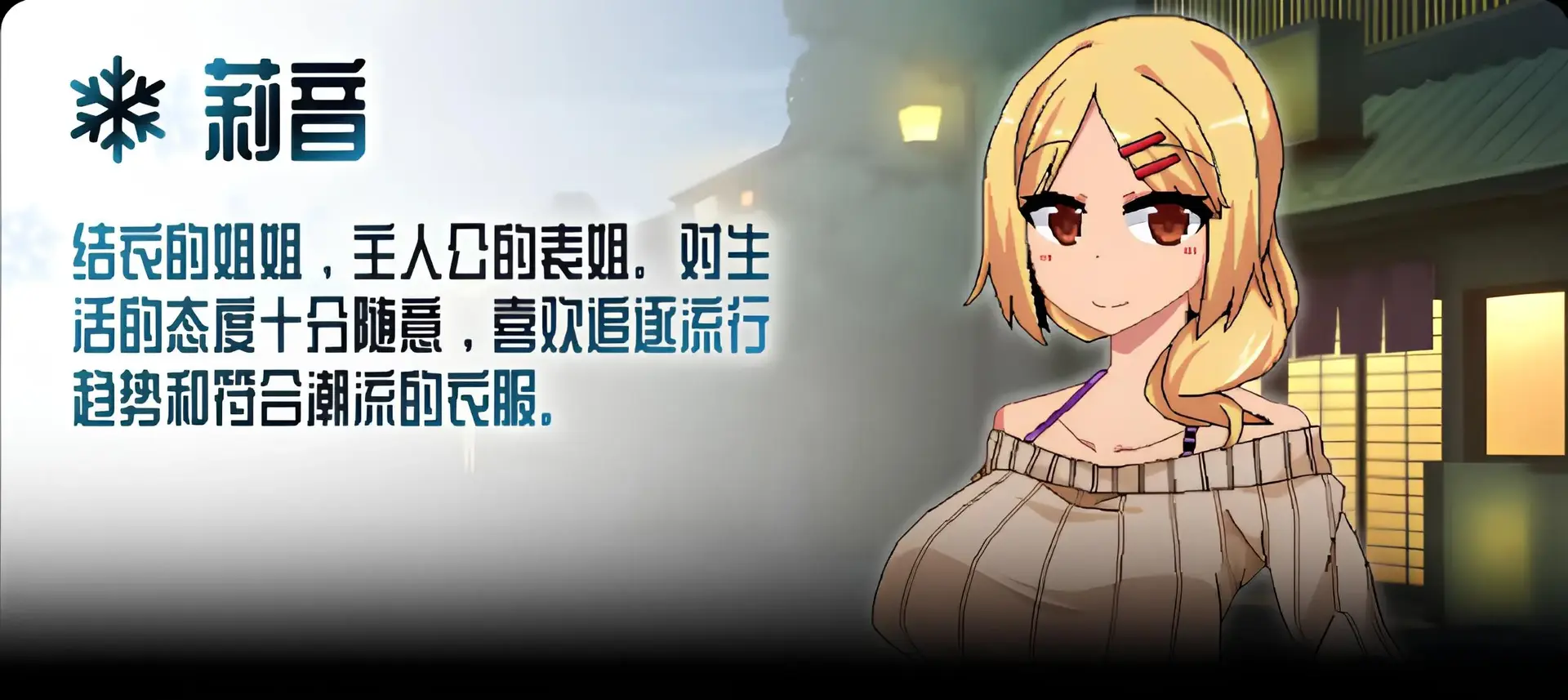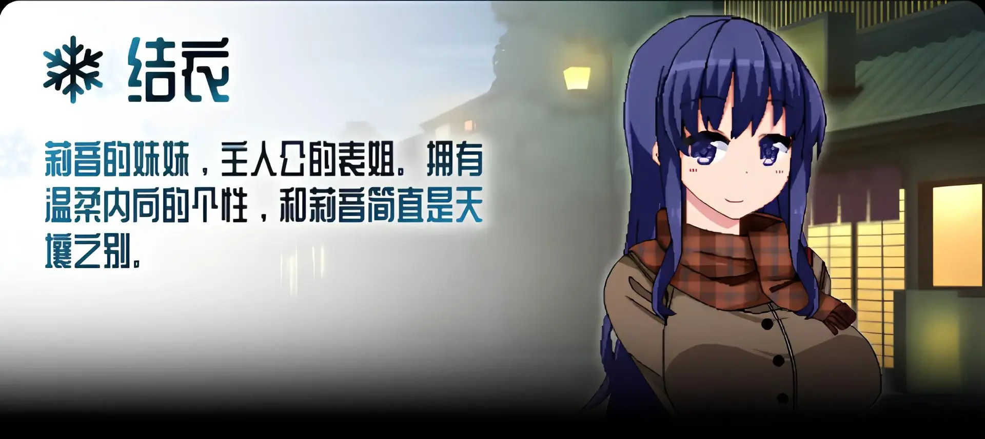 寒霜轻覆的海滨小镇,我们的主人公再度归来,与莉音、结衣、美雪三位至亲重逢,半年前未尽的羁绊在炉火噼啪声中重新点燃。您将自由探索雪中秘境,在茶室对弈、冰钓竞赛等十二种特色游戏里创造独家回忆,更需巧妙规划时光平衡温泉夜话与破晓探险。当祭典烟花照亮雪夜,那些欲言又止的悸动与十指相扣的誓言,正等待您亲手写下最终篇章。