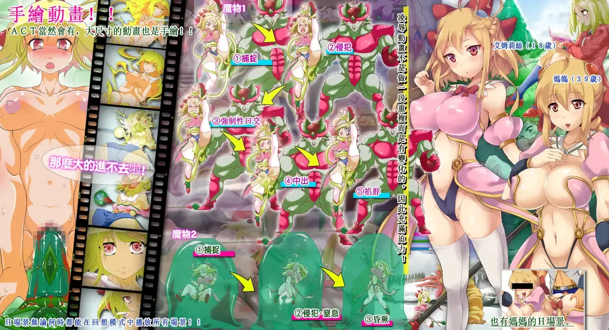 抓住嘿姆莉絲的身體、就開始強姦、凌辱、全吞、切傷、切斷乳頭等、