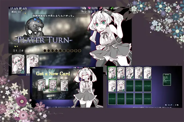 这是一个一边制作自己的独特的卡组,一边往高层前进的roguelite卡牌游戏。