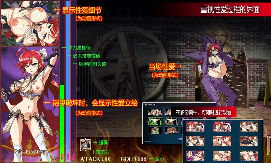 在女剑士被敌人袭击时,左下窗口有详细动画显示。