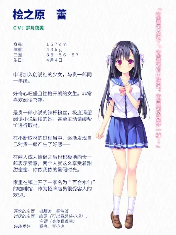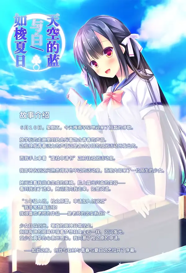 《天空的蓝与白/如梭夏日》是由日本美少女游戏品牌Barista Lab于2022年夏天推出的一款恋爱小品作。