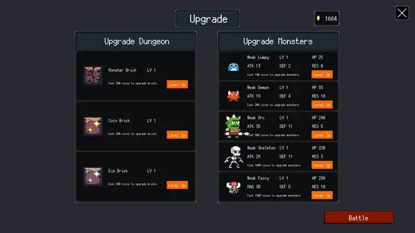 金币用于升级地牢与怪物,同时你将俘获女孩作为奴隶。