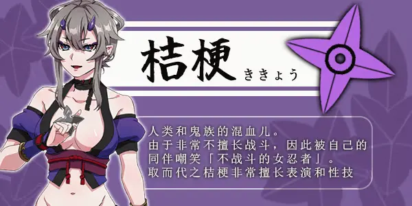 但是和其他女忍比起来、桔梗没有什么战斗能力,被同伴们嘲笑是「不战斗的女忍」。