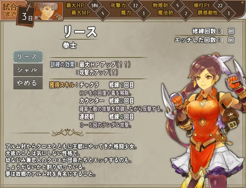 为了在大赛中获胜,她请求公会里的成员(全都是女性)帮她进行特训,