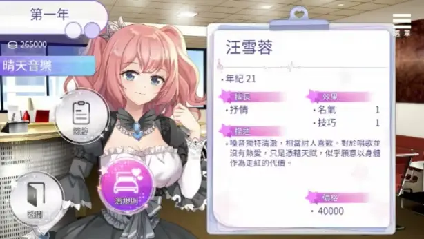 游戏中可供攻略的角色有妹妹黄语柔、两位合音歌手汪雪蓉与许怀玉、