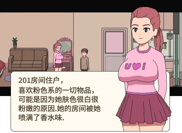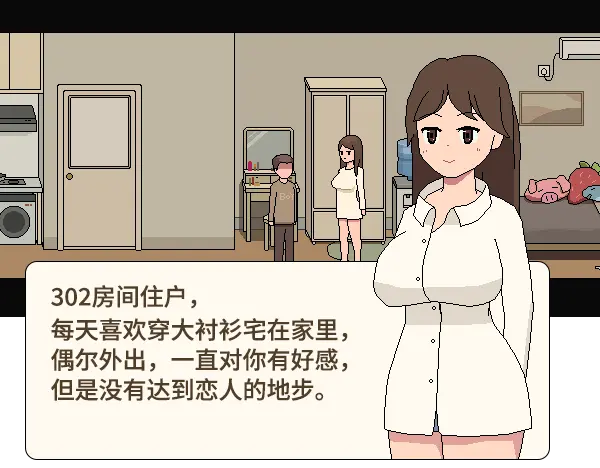 这是一个公寓体验模拟器,玩法是让你体验在公寓中与各种住户的互动。