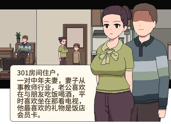 三楼住着一位中年夫妻,男方经常喝酒,喜欢去周变饭店酒馆喝酒消费,经常不回家。