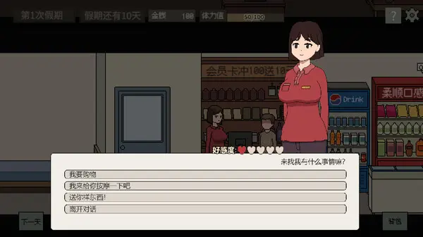 通过给NPC按摩赚钱,用赚到的钱送礼物,10天假期结束后,解锁达成知己。