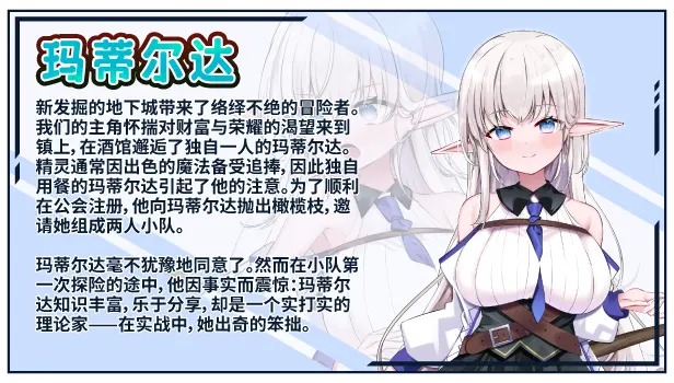作为初出茅庐的冒险者,你遇到了神秘而美丽的精灵玛蒂尔达。
