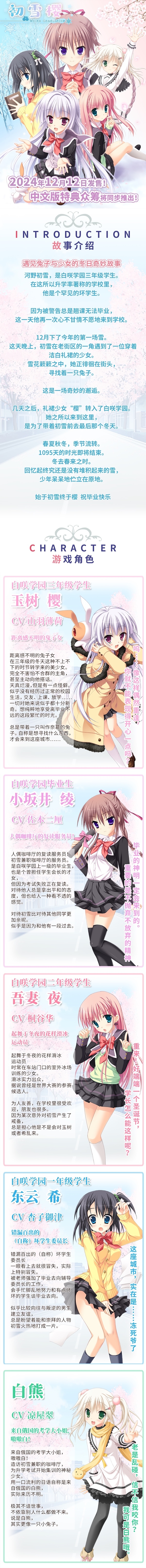 《初雪樱》是一部恋爱题材的作品,玩家在其中扮演河野初雪。