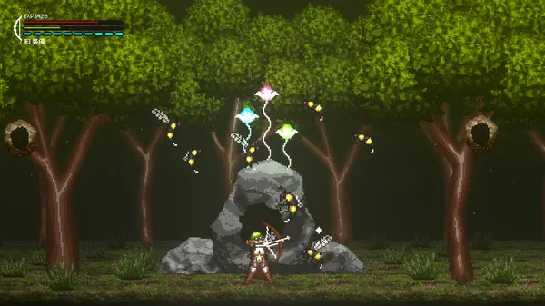 《精灵弓箭手 与 消失的巨树》是一款2D像素横版射箭游戏。