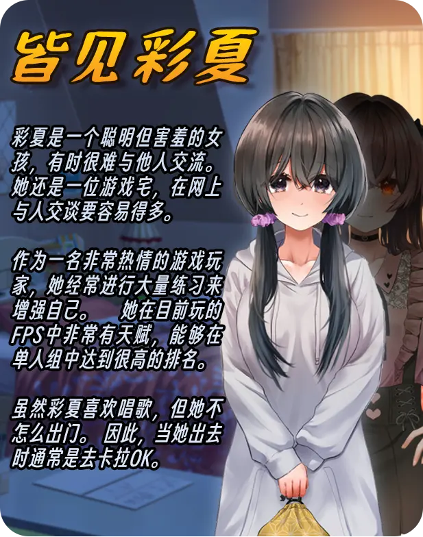 而彩夏的角色则以视觉小说的风格讲述。