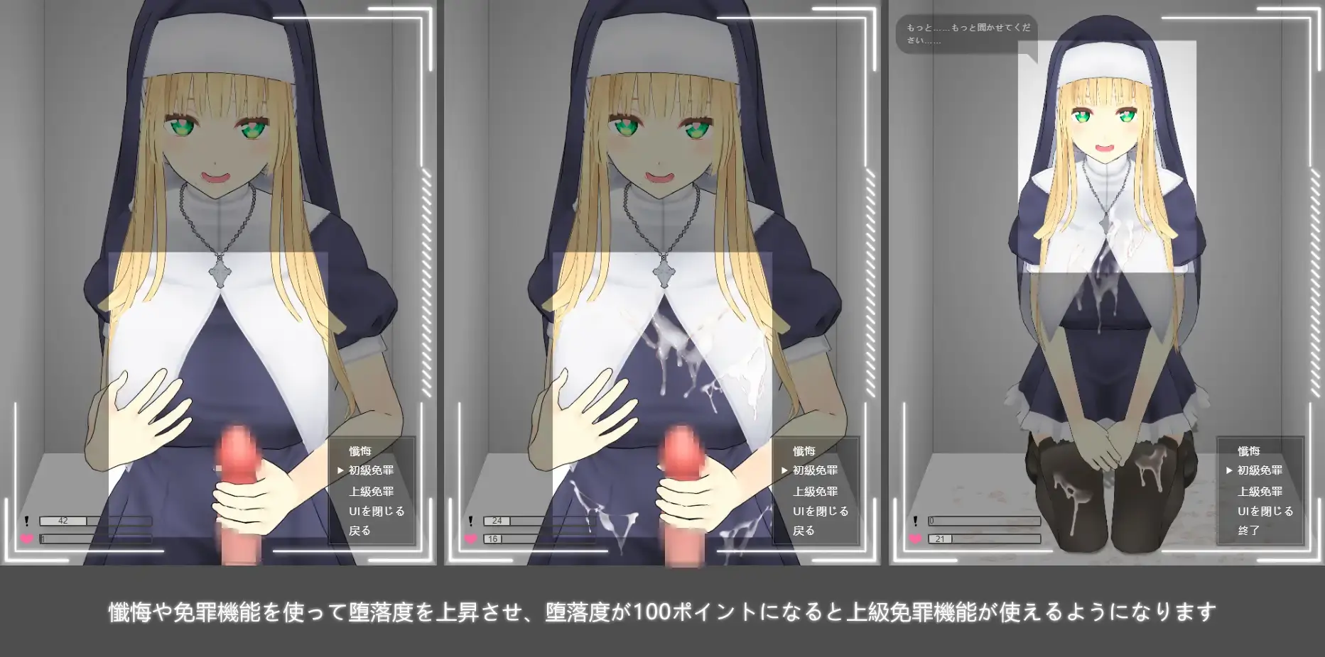 当姐姐的堕落度达到1点时,可以使用基础赦免功能,当堕落度达到100点时,可以使用高级